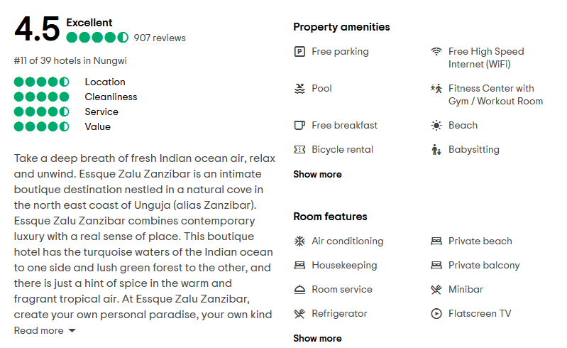 HOTEL NAME:ESSQUE ZALU ZANZIBAR (NUNGWI BEACH)