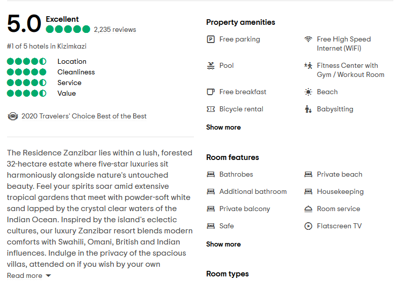 | DETAILS | The Residence Zanzibar***** |